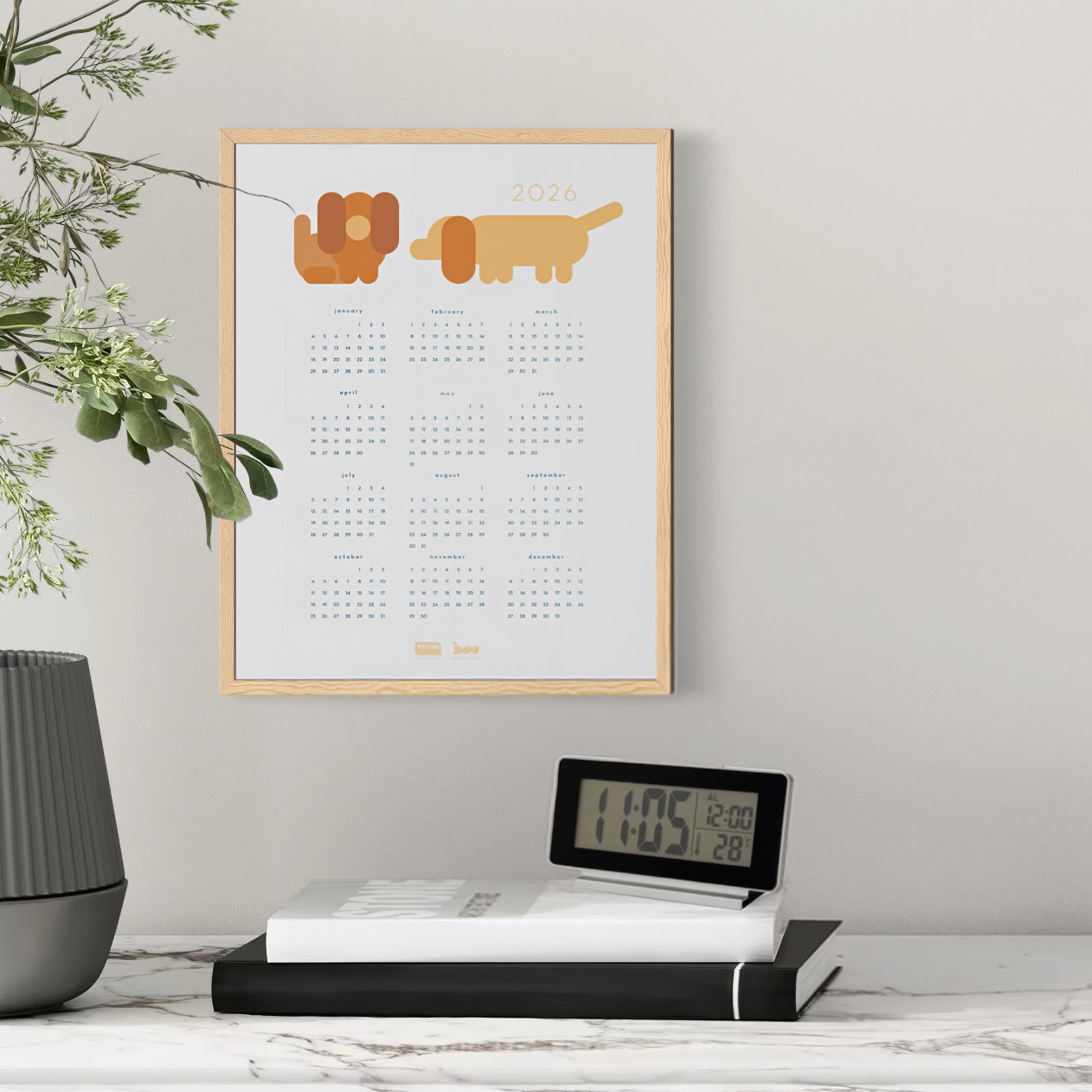 Meet Fred + Jasper, the Vivid Print Basset duo starring in Bee Waeland’s 11×14 2026 Calendar